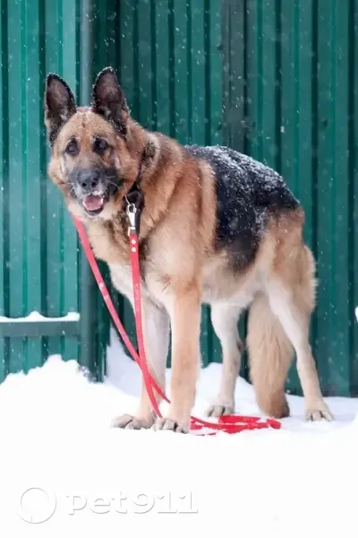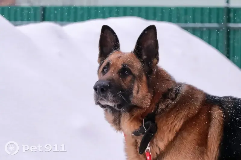 МО, мкр.Железнодорожный. ️Найден 10.02.2026, придержан крупный кобель немецкой овчарки. На шее - широкий, кожаный (коричневый) ошейник, медальон отсутствует. На вид около 8 - 10 лет. Хромает на задние лапы, истощён, с опаской реагирует на мужчин. Не нравится, когда прикасаются к телу (скалится), не даёт снять ошейник. В прямой конфликт не вступает. Лакомства из рук берёт. Знает некоторые команды.
