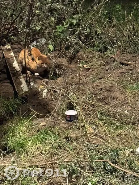 Найден кот или кошка, на вид взрослый. Окрас рыжий, лапки и грудка белая, переносица/около носика и где рот белый. Упитанный, возможно подкармливают. Прячется под машинами и мяукает, к людям не подходит. Постоянно находится около 8 дом 1-ый подъезд.