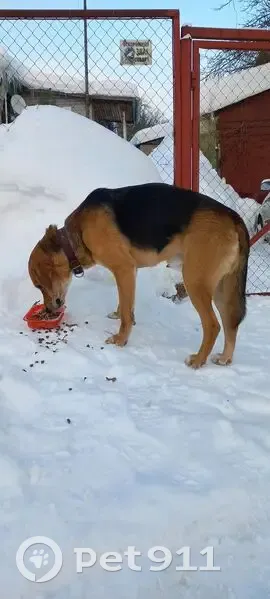 Прибился кобель породы гончая в январе. С ошейником. Ласковый. На лбу маленький шрам, на передних лапах шрамы.