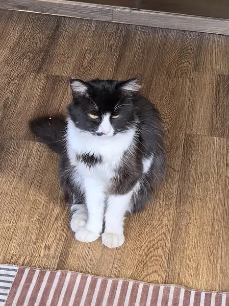 Нашли кота 23.01. На остановке не далеко от деревень - Садки, Зайцево, Балакирово. Возможно выпрыгнул из машины или потерялся. На шеи голубой ошейник новый. Пахнет защитным средством от блох. Помогите найти хозяев.