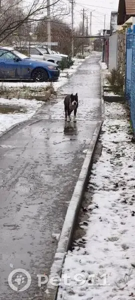 Найдена сука АМСТАФ, район элеватора (Динская, уд. Садовая ,д 16). В ошейнике. Забрать некому, пока сидит в этом месте пару дней и не уходит. +7 918 676 1441 Наталья