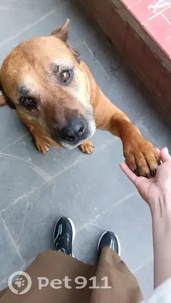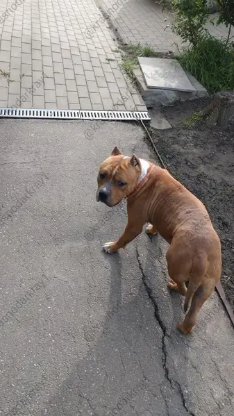Малыш найден в поселке истощенным, кожа да кости, побитым, рваные раны на ухе и лапах. Три месяца восстанавливали его здоровье, откармливали. У него купированые уши, но команд не знал. Возраст - 8-10 лет. Фенотип американского стаффордширского терьера и , возможно, немецкой овчарки. Спокойный, воспитанный, умный пес. Охраняет территорию. С кобелями не дружит, со стерилизованной девочкой ужился. Нужно найти его прошлых или новых хозяев. Терпит до выгула. По пусту не лает. Нежный и чуткий, ориентирован на челоека. Оставить у себя нет возможности , в доме уже двое своих кобелей.