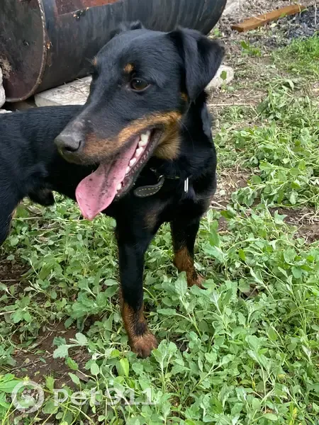 Черный окрас с коричневым, ягдтерьер, примета есть ошейник и у него одно яичко, мальчик