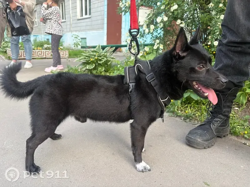 нашелся песик рядом с Аверьянова 12 у речки березовец, бегал в черной шлейке без поводка, видно что домашний, увязался за нами, выглядел потерянно, на дорогу под машину выскочил. Забрали на время к нам домой, песик активный и дружелюбный, приучен к улице очень ищем хозяев или кто бы мог взять на дальнейшую передержку, нет возможности держать дома