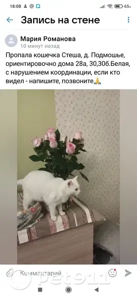 Объявления о пропавших и найденных животных, Подмошье, фото: Пропала белая кошка: Подмошье, 30