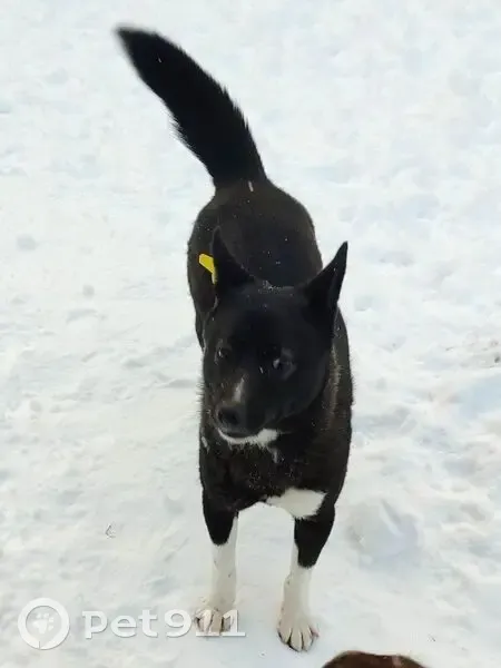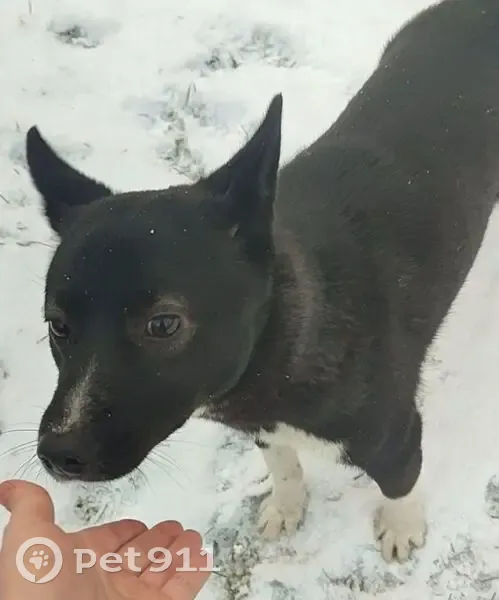 бегает по деревне с ноября/декабря 2025 Черно-белая девочка, небольшого размера, возможно карельская медвежья собака или русско-европейская лайка. Без ошейника и амуниции (прибежала без чипа на ухе, ее чипировали и вернули в деревню). Добрая, боязливая