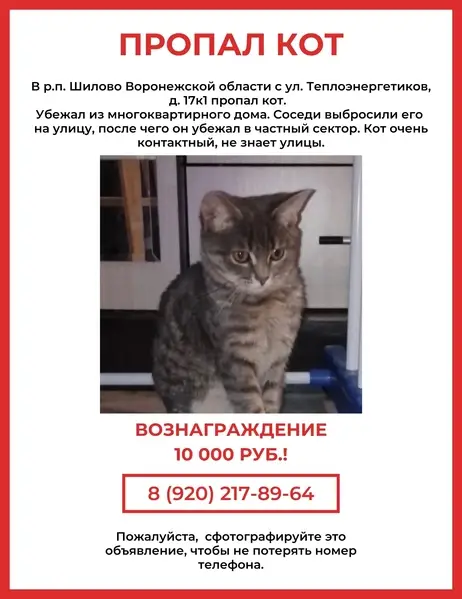 12 мая в районе 8:50 в электричке Вербилки - Москва Савеловского направления (отправлением 7:36 из Вербилок) найден кот (или кошка) явно домашний, серого тигрового окраса (светло и темносерые полосы) предположительно Американской короткошерстной породы.