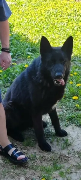 Найдена овчарка. чёрная в районе города Долгопрудный. Знает ко манды. Ищем хозяина, у себя не можем оставить. у нас пять собак