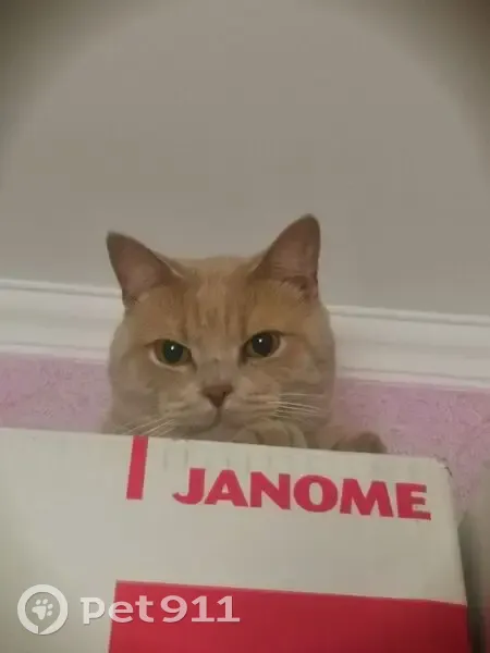 Пропал на парковке во дворе дома. В момент пропажи на коте была обвязка для поводка голубого цвета. Кот немного больше среднего размера. Бежевый (бледный рыжий) окрас. Есть малозаметные темные пятна и полоски.