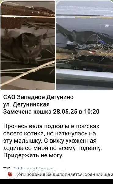 Объявления о пропавших и найденных животных, Москва, фото: Кошка найдена: Дегунинская ул., 26 к1