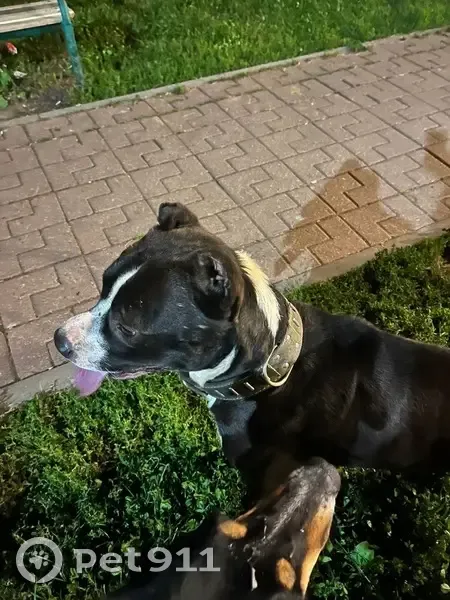 Обрезанные (купированные) уши Пес не кастрированный, голодный, очень контактный. Адресника нет, есть только кожаный ошейник. От собаки сильный запах. Может быть давно потерялся