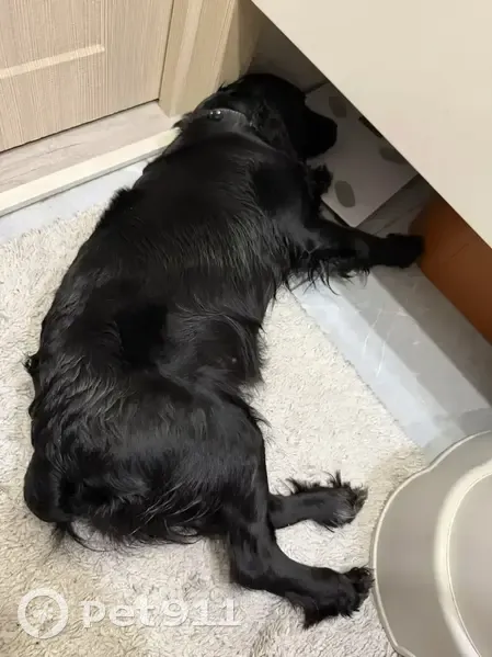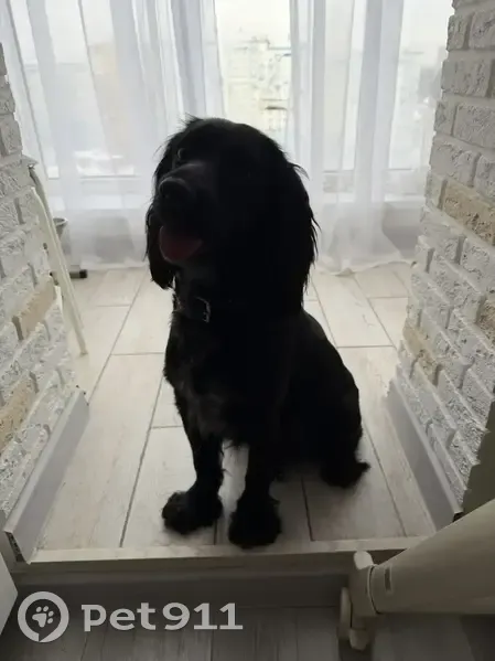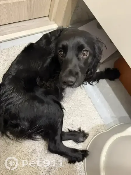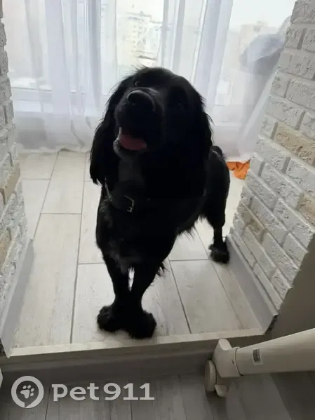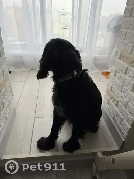 Черный окрас, очень активная, есть ошейник, похожа на породу Кокер спаниель