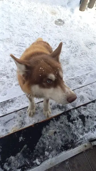Прибилась к дому и не уходит, собака после операции, умная, знает команды. Видно что собака домашняя