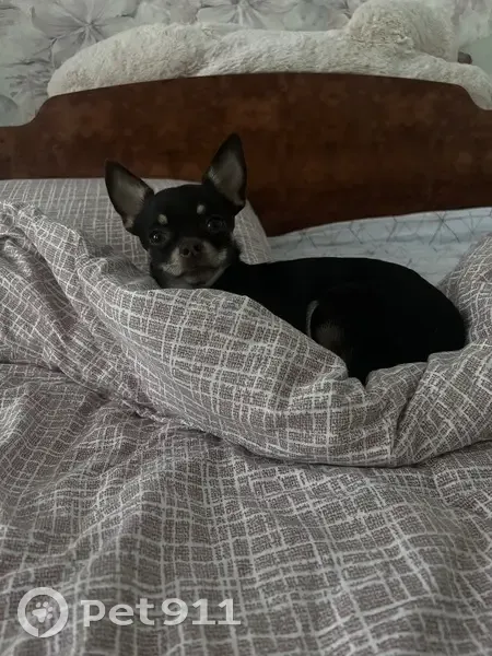 Темный шоколад, грудь светлого цвета, маленького размера (меньше обычных чихуахуа), ласковый, очень любит детей. Убежал пока отвлеклась на дочь (выходили из машины), без ошейника