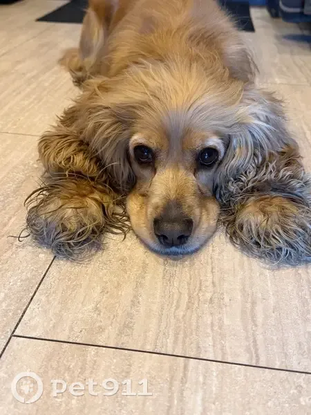 Найдена собака, девочка спаниель, коричневый окрас, ухоженная и чистая. Не похожа на уличную собаку. Был только ошейник. Нашли во дворе дома по адресу: МО, г. Дубна, пр-т Боголюбова, д. 43.
