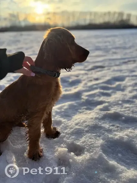Рыжий,висячие уши кудрявые. Средняя порода. Черный ошейник. Поднимались по Мусина с площади домой,после нг. И после хлопушек испугался .. Сбежал вверх сторону верхнего рынка