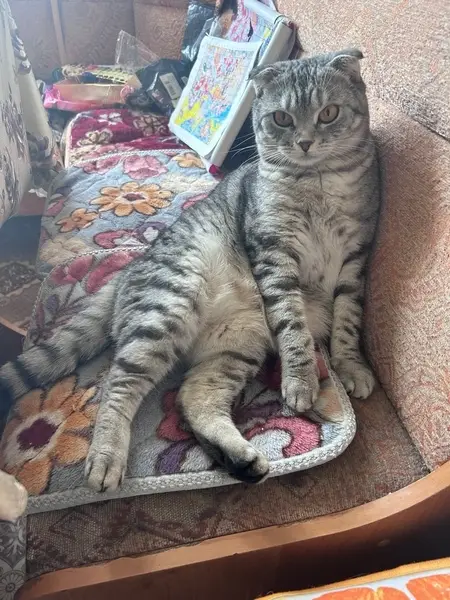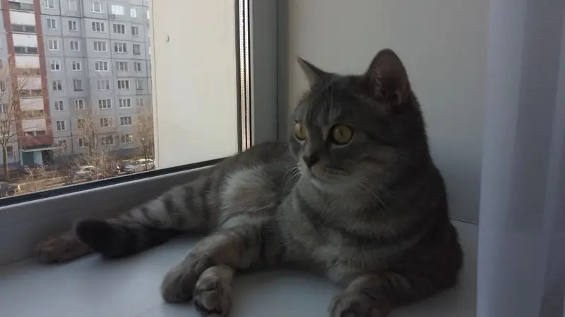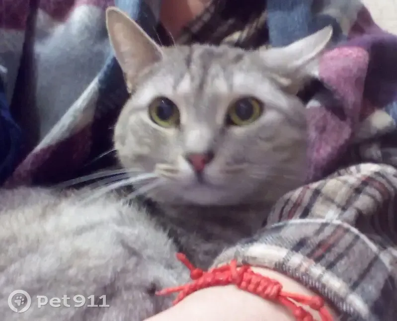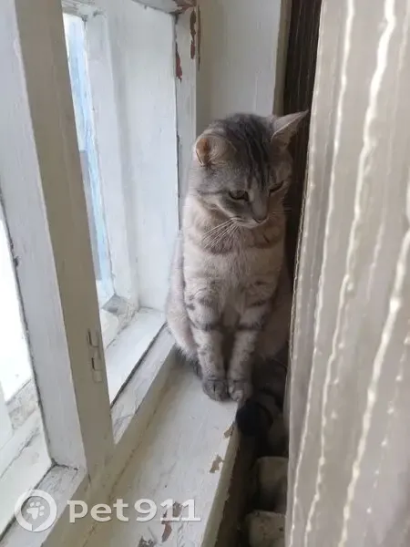 Сидел в подвале. Серый котик, добрый, ласковый.