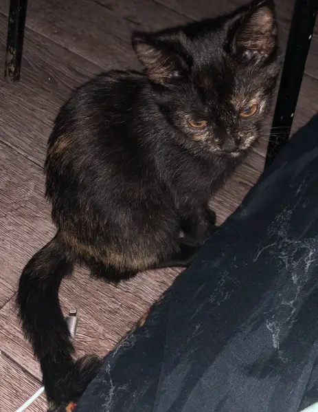 В ночь с 23 на 24 января, в сильный мороз, во дворе дома по ул. Суворова, 5А мы нашли эту бедолагу. Кошка (или кот) жалобно мяукала у подъезда, и мы не могли оставить её замерзать. Пустили погреться в подъезд. Всё говорит о том, что это домашний питомец: она ласковая, ищет общения и очень ждёт хозяина. Днём мы выпускали её погулять – но она не ушла, а сидела у двери подъезда, как будто надеялась, что её снова впустят. Конечно, мы не могли оставить её на морозе и снова взяли на время холодов. Она очень скучает и хочет домой!