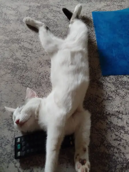 Котёнок девочка 1,5-2 месяца. Кричала под балконом. Белая с серыми пятнами и хвостиком.