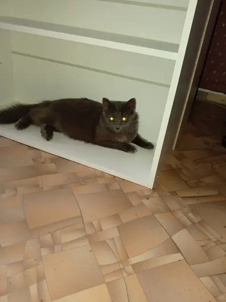 Кошка серая с желтыми глазами. очень ласковая. спокойная. Явно бывшедомашняя