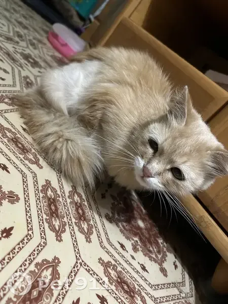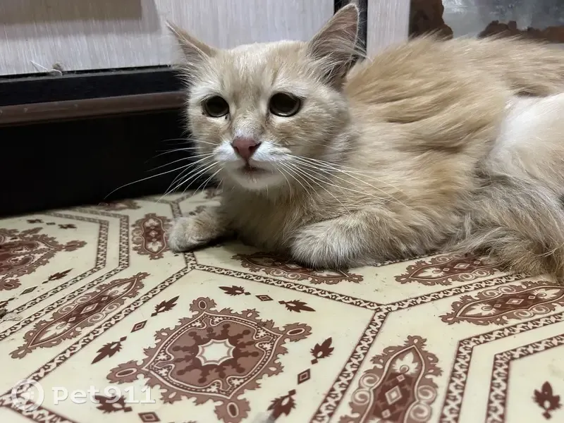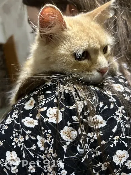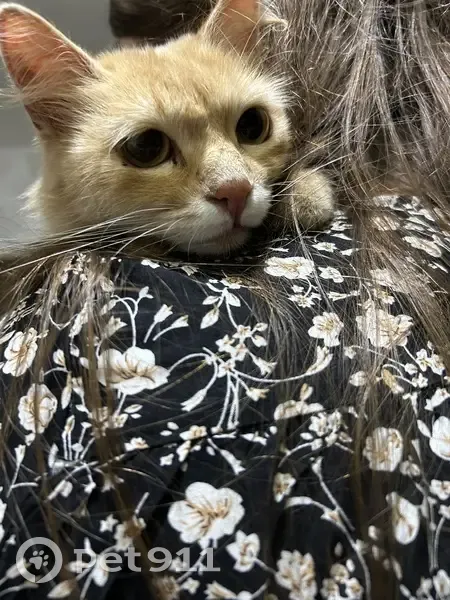 Найдена кошка, персикового цвета, с ошейником от блох, очень ручная, контактная. Очень напугана, не ела около недели, сильно исхудала. Сейчас находится на передержке.