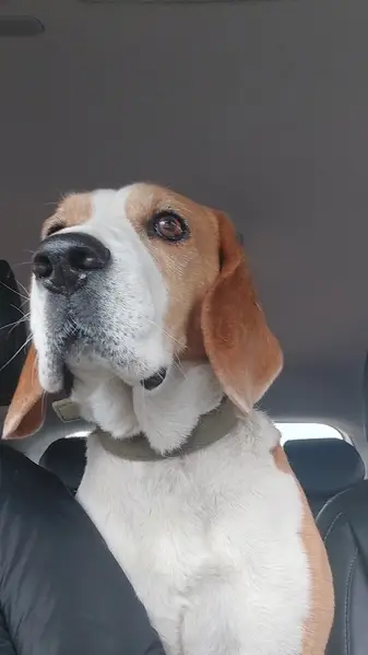 найдена собака породы Бигль возраст 2. 5 года. Взяли на передержку. конт. тел. ...
