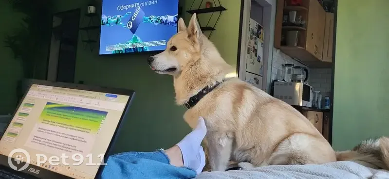 Бежевый цвет шерсти, сидела у подъезда соседнего дома ул.Грибоедова д.46А выла и скулила. Вечером забрали её к себе домой. Судя по всему у хозяев есть дети и коты, так как к нашим домашним собака быстро привыкла и послушно не трогала никого. У нас 2 кота и 2 маленьких ребенка. Наверняка они тоже скучают если у хозяев есть дети.
