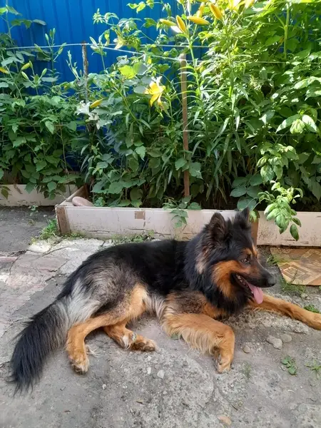 Собака похожа на овчарку, спокойная,не много даже публика. Прибилась к дворняге и вот эти дни бегают в этом районе ,спят прям на дороге.
