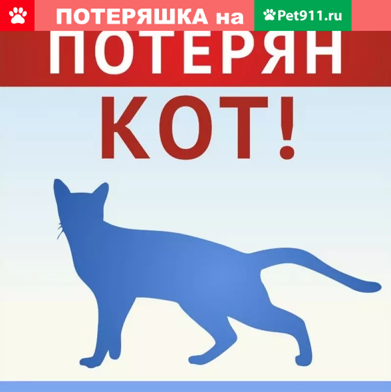 Дзержинск! Пропал кот 28 июня!Ул. Октябрьская 21а.