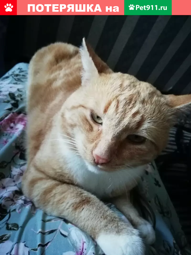Здравствуйте, друзья. У нас вчера вечером кот пропал, кличка Рыжка (У него глазки близко расположены и он очень плюшевый). Спрыгнул кот с балкона 3 этажа и удрал, а куда мы не знаем. Район площади Маяковского. Помогите нам в поисках, позвоните пожалуйста, если вдруг где-то увидите его: .