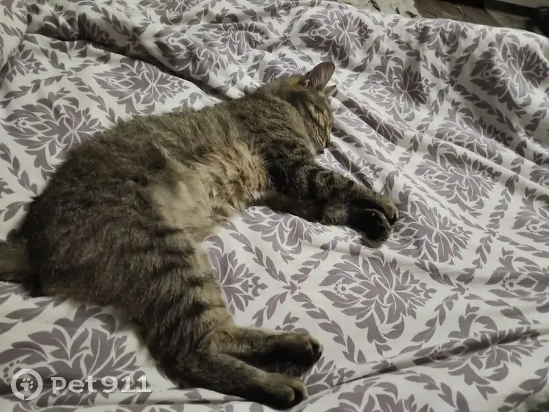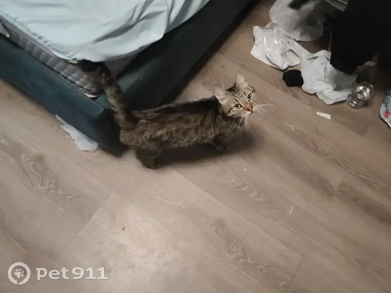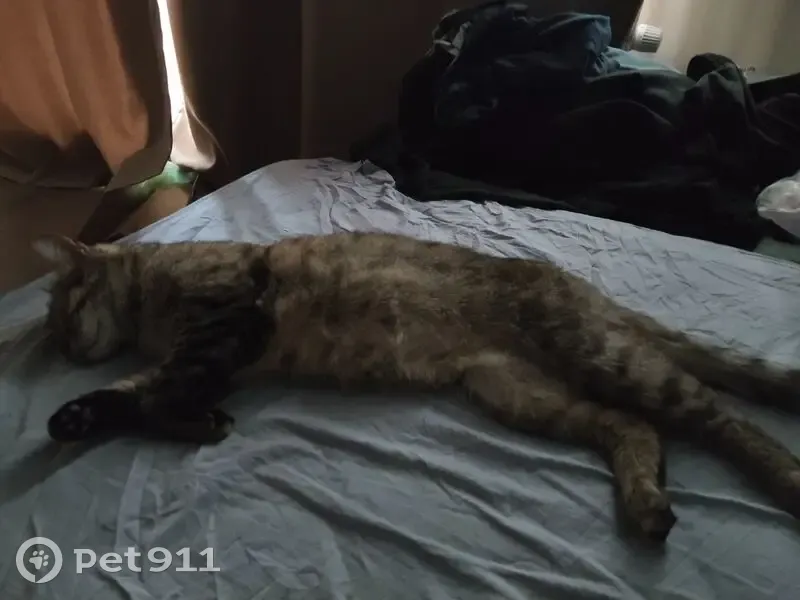 Серо-черная полосатая с рыжиной. Нашел утром у подъезда, на задней лапе выбит коготь(ранка зажила). Очень контактная, постоянно лезет на руки. Здоровая,молодая(свозил к ветеринару, помыл, обработал от паразитов, надел ошейник от блох). Про стерилизации не знаю, надо делать узи. Ищу её хозяина или хотя бы хорошего нового(сам оставить не могу, тяжёлое тревожное расстройство на почве смерти домашнего любимца)
