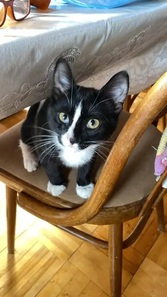 Найден кот возле ЖК на станции Электросталь. Кот черный с белыми усами и носочками, также белые пятна на животе. Кот контактный, ласковый и любознательный. На вид 4-5 лет.