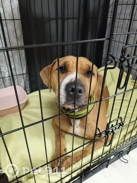Найдена на трассе Электросталь , амстафф Рыжая с белыми пятнами, девочка , нужна помощь в пристройке, оставить не можем
