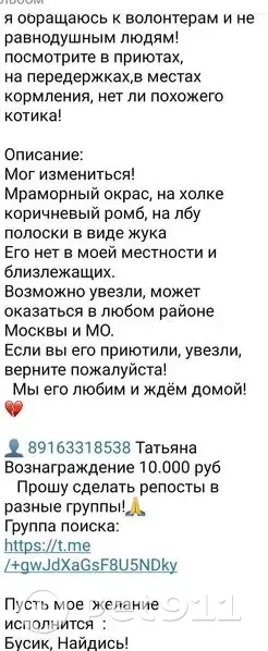Каждый час поисковый робот Pet911 на основе искусственного интеллекта сканирует и распознаёт тысячи фото со всех тематических сайтов и социальных сетей для того, чтобы найти питомцев, похожих на вашего.