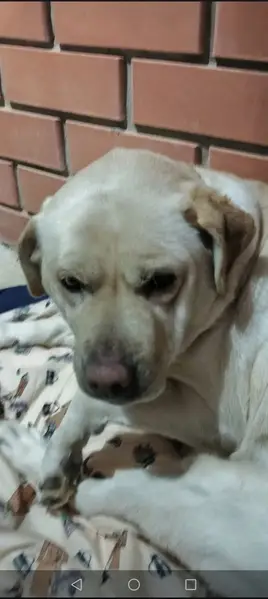 Светлая, плотная, есть подозрение, что беременная, но это не точно.Все время голодная. Бегала за двором, потом забежала к нам и почти не выходит со двора. Очень спокойная, дружелюбная.