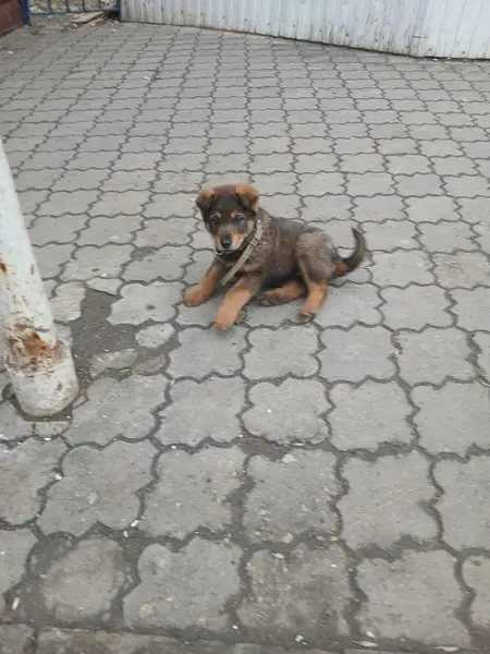Девочка 9 месяцев. Окрас бежевый ближе к белому. Рост чуть выше колена.