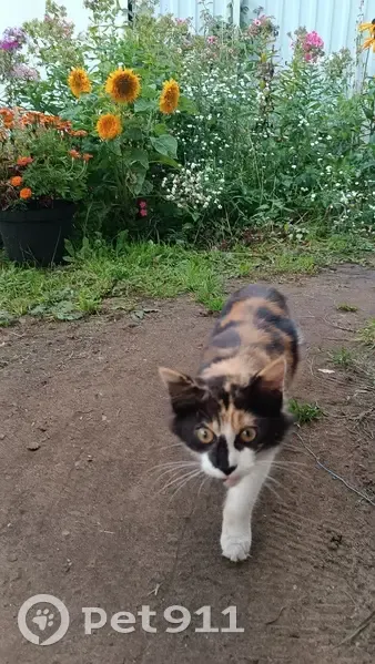 Найдена молодая кошка, судя по всему домашняя и явно в шоке от происходящего. Трёхцветная, маленькая, с пушистым хвостом. В руки даётся, мяучит осипшим голосом. Как пришла, так может и уйти - она пришла на участок. Очень жалко ребенка!
