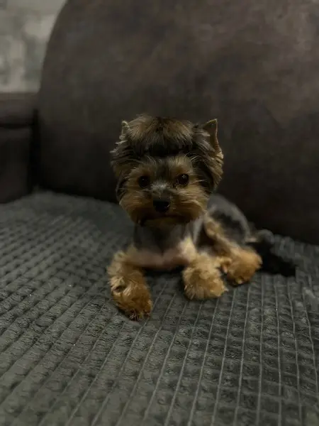 Йоркширский терьер, девочка, бегала по проезжей части по ул. Новороссийской, пересечение с Ул. Минской, растерянная. Видно, что недавно стрижена, на голове хвостик, на кончиках ушей приклеены стразы.