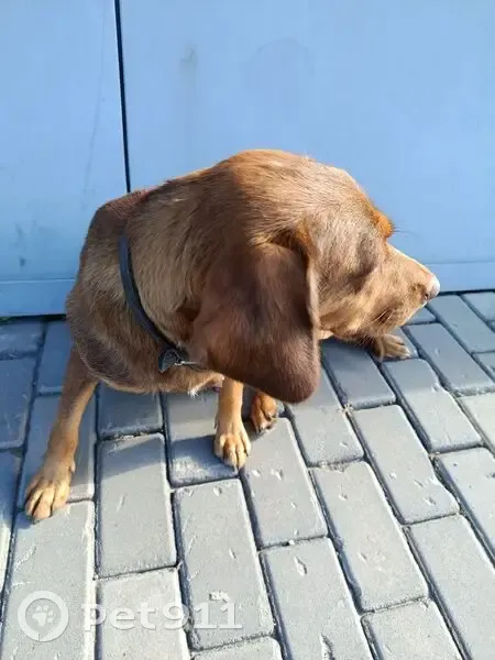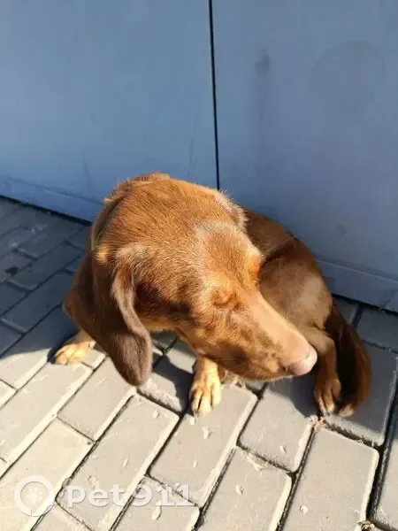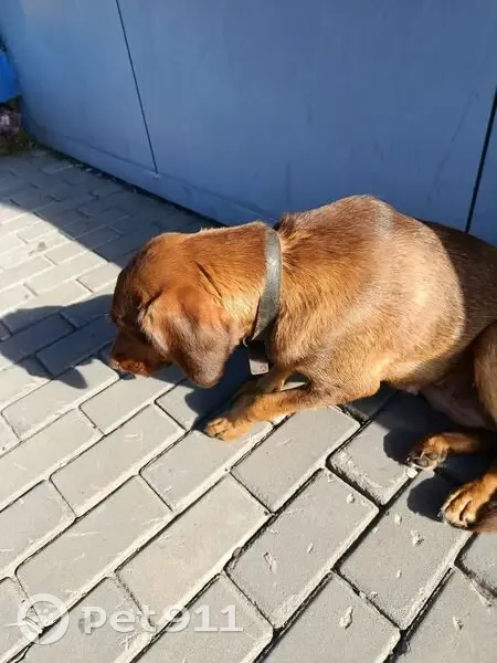 Рыжая собачка,девочка,сидит на углу магазина лента. В ошейнике. Очень добрая и напуганная,вся трясется. Или кормящая или недавно закончила кормить щенков.
