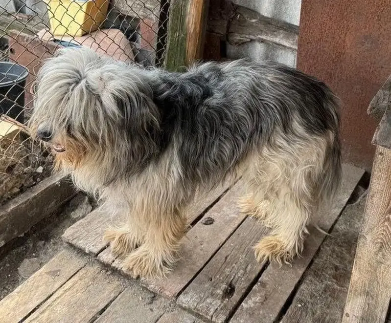 Собака бегала по дороге , мокрая , замерзшая , мальчик , возраст примерно 3 года , окрас серый с рыжим , длинноволосый ,