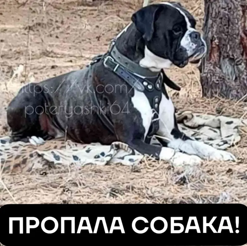 Найден кобель в районе п.Пробуждение порода боксер. На вид около года, был ошейник