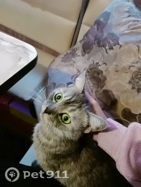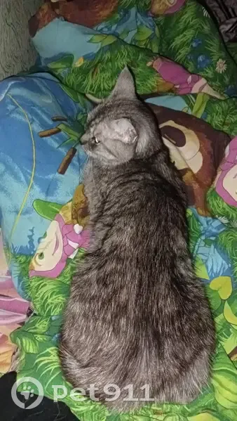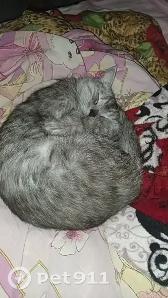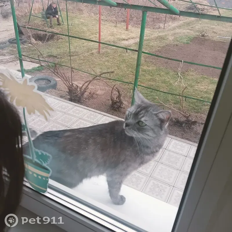 Серая в не очень ярко выраженную полоску. Зеленые глаза. Гладкошерстная. Хвост полосатый. Не очень большая. Характер имеет, чужих не любит, может шипеть. Любит сухой кошачий корм.