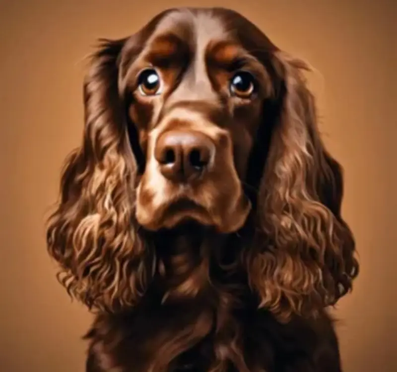 Русский спаниель, окрас темно коричневый, кличка Макс.