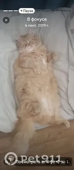 Пропал большой пушистый рыжий кот , окрас не яркий, окрас более пастельный, может быть в Павловске, в районах деревни Глинка, снт алгоритм, Онегин парк, Павловский парк, район школы интерната 68 в Павловске