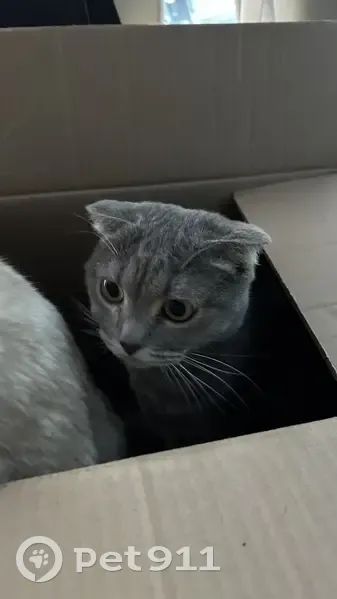 Вторая из найденных кошек на Парковом 11, Федоровский. Видно что домашняя. Похожа на британца. На вид ухоженная, блох не нашли. По возрасту похоже, что года 1,5-2.