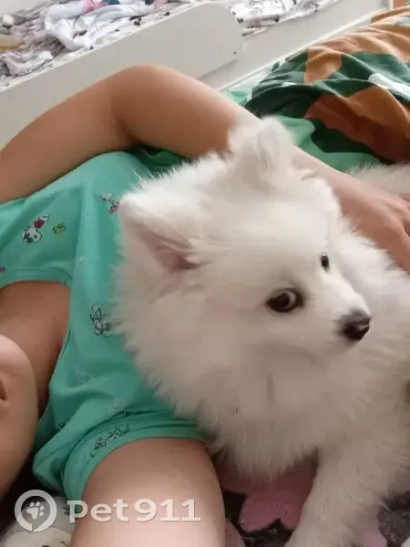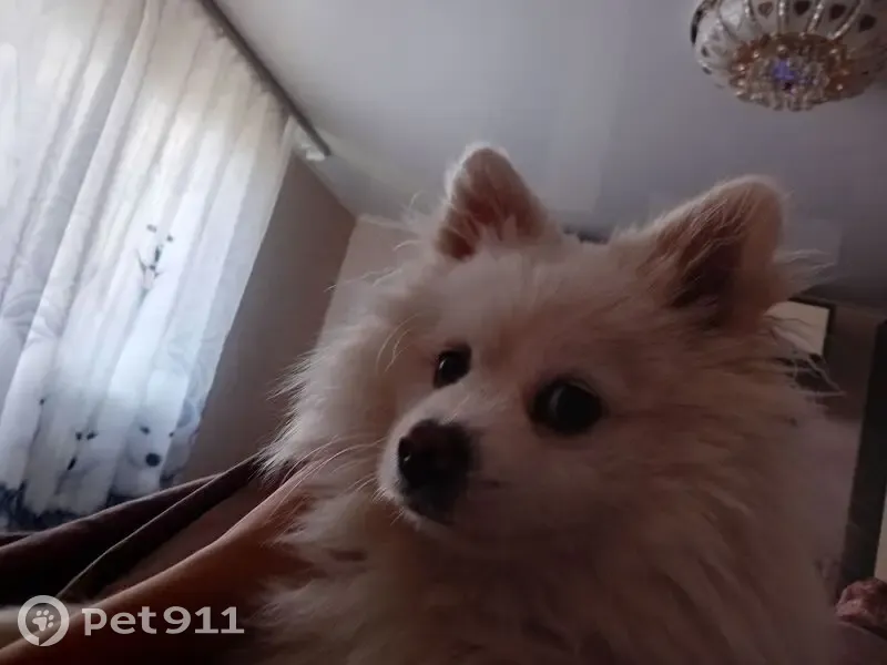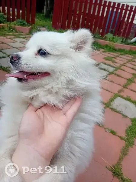 Белый шпиц , у него небольшие участки шерсти на хвосте и ушах окрашены в бежево- коричневый цвет , а сам он Белый, еще на носу у него розовенькие пятнышки. Он очень добрый . Потерялся в ночь с 31 на 01 , во время салюта он порвал поводок и убежал , искали 2 часа но не смогли найти по скольку была очень сильная метель