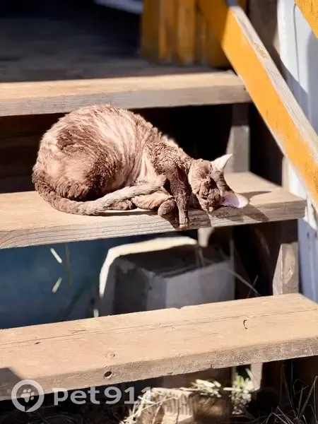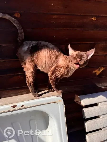 Вышел на улицу в районе начались взрывы испугался и убежал из дома домашний кот. К улице не приучен, теплолюбив, прожорлив, кудрявый. Порода Девон Рекс окрас шоколад.