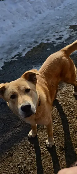 Рыжий пес, мальчик. Откликается на кличку "Арчи". Порода монгольский волкодав, на шее имеется ошейник.