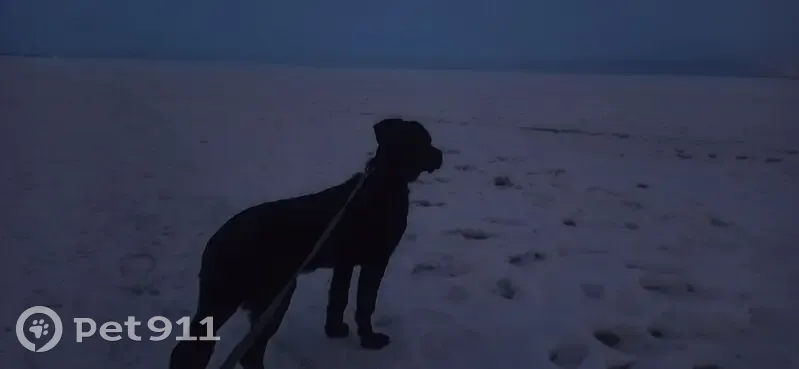 Лабрадор ретривер 6-7 месяцев. Черный. Никаких РАН и повреждений не обнаружил. В ошейнике. Добродушный и коммуникабельный. Бегал по дворам очень голодный, худой. Забрал его в город, но долго держать не могу, т. К. Мой пёс сильно ревнует.