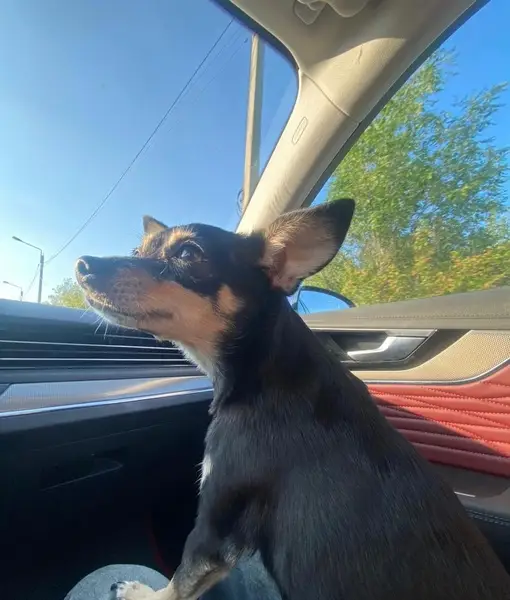Альф его стали звать недавно, до этого он был Цезарь, он похож на мини добермана ,у него очень ярко выраженные охранные качества, он знает все команды .. Гуляли с коляской он куда-то рванул ,малыша завезли домой пошли искать, ездили два дня вокруг ,звали ,ходили найти не смогли.. Он просто недавно у нас.